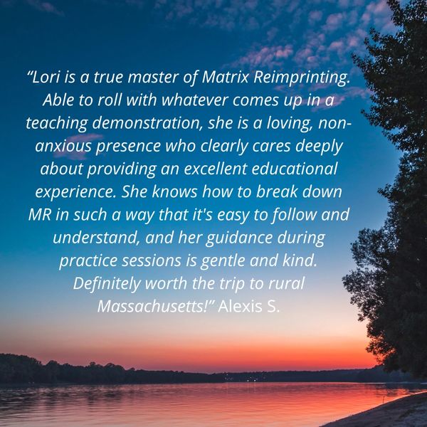 "The Matrix Reimprinting training was truly awesome. Lori was not only incredibly knowledgeable, but also extremely open to questions, encouraging, and kind. She created such a supportive learning environment where it felt safe to engage and explore.